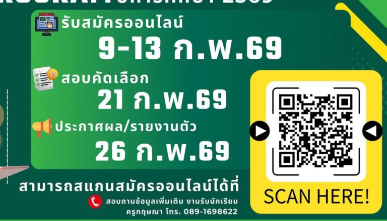 แผนการเรียนนักเรียนชั้นมัธยมศึกษาปีที่ 1 ปีการศึกษา 2569