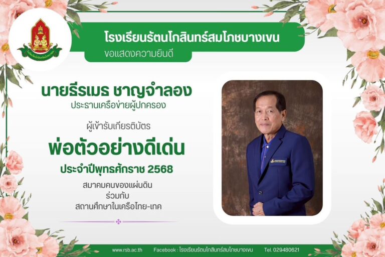 โรงเรียนรัตนโกสินทร์มสโภชบางเขน ขอแสดงความยินดี กับผู้ได้รับเกียรติบัตร “พ่อตัวอย่างดีเด่น ประจำปี พ.ศ. 2568” จากสมาคมคนของแผ่นดินร่วมกับสถานศึกษาในเครือไทย–เทค นับเป็นความภาคภูมิใจของชุมชน รส.บ. ที่ได้เห็นแบบอย่างของคุณพ่อผู้มุ่งมั่น ตั้งใจ และเป็นกำลังสำคัญในการสนับสนุนโรงเรียน ขอแสดงความยินดีมา ณ โอกาสนี้ 🎉 ในวันที่ 5 ธันวาคม 2568โดยpornthep boonmaวันที่5 ธันวาคม 2568