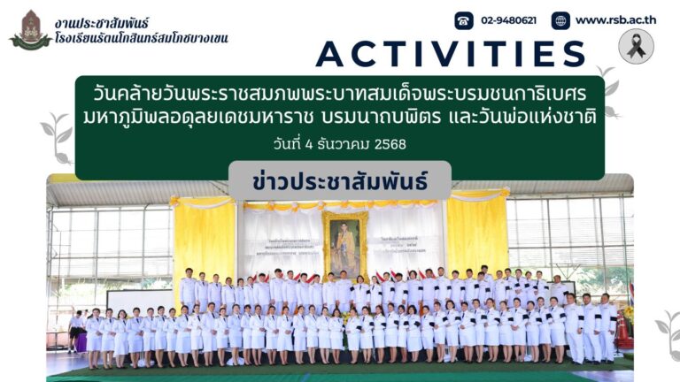 โรงเรียนรัตนโกสินทร์สมโภชบางเขน จัดกิจกรรมวันคล้ายวันพระบรมราชสมภพ พระบาทสมเด็จพระบรมชนกาธิเบศร มหาภูมิพลอดุลยเดชมหาราช บรมนาถบพิตร ในวันที่ 4 ธันวาคม 2568โดยpornthep boonmaวันที่5 ธันวาคม 25685 ธันวาคม 2025