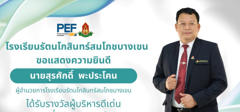 โรงเรียนรัตนโกสินทร์สมโภชบางเขน ขอแสดงความยินดีกับนายสุรศักดิ์ พะประโคน ผู้อำนวยการโรงเรียนรัตนโกสินทร์สมโภชบางเขน ที่ได้รับการคัดเลือกจากมูลนิธิเพื่อพัฒนาการศึกษาเอกชน ให้ได้รับโล่เกียรติยศ ผู้บริหารดีเด่น ประจำปีพุทธศักราช 2568โดยpornthep boonmaวันที่13 ธันวาคม 256813 ธันวาคม 2025